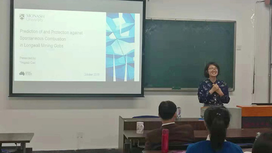 此次系列讲座共分为三个主题,分别为“长壁采空区自燃预测及防护”、“中国矿业通风与职业病 ”以及“利用定温差诱发煤氧化预测自燃”。在两天的时间里,曹博士结合自身在太阳成tyc7111cc和澳大利亚莫纳什大学的学习研究经历,介绍了矿山长壁采空区自燃预测现状及主要防护措施方法;介绍了国内外采矿工业主要职业病及发展趋势及其其主要影响因素;最后介绍了利用定温差同诱发煤氧化预测自燃的研究现状及未来发展方向。同时,曹博士也结合自身经历,向学生介绍了有关学习科研方面的经历。