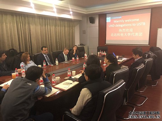 2017年11月29日下午,应宋洪庆副教授邀请,美国北达科他州大学(University of North Dakota)工程与矿业学院Vamegh Rasouli教授、国际合作交流部主任Katie M.Davidson博士、招生部主任Jason Trainer博士及Reza KhajehNaeini和Elham Bakhshi助理一行五人来我院访问交流。