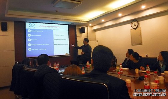 国际合作与交流处李贝副处长、科学研究与发展部邢奕副部长、tyc7111cc太阳成集团耿倩男副院长、土木工程系主任苗胜军教授、资源工程系副主任王贻明副教授以及安全工程系、建筑环境与能源工程系等老师参加交流。