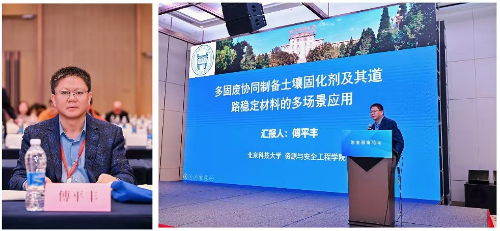 11月9日上午在冶金固废论坛上,傅平丰受邀做了题为《多固废协同制备土壤固化剂及其道路稳定材料的多场景应用》的报告。报道了利用高炉水淬矿渣粉、钢渣、粉煤灰、建筑垃圾微粉和电石渣等大宗工业固废为原料,针对低液限粘土、建筑垃圾分离渣土和滨海盐渍土3类程土性质的差异,按“碱-硫酸盐复合激发原理”,通过成份配伍调整,制备出适用上述3类应用场景的固废基土壤固化剂,研究了固化土体的力学性能和路用性能,并展示了大规模工业示范的应用成果,为大宗工业固废用于道路基层、底基层和水稳层建设提供了重要支撑。