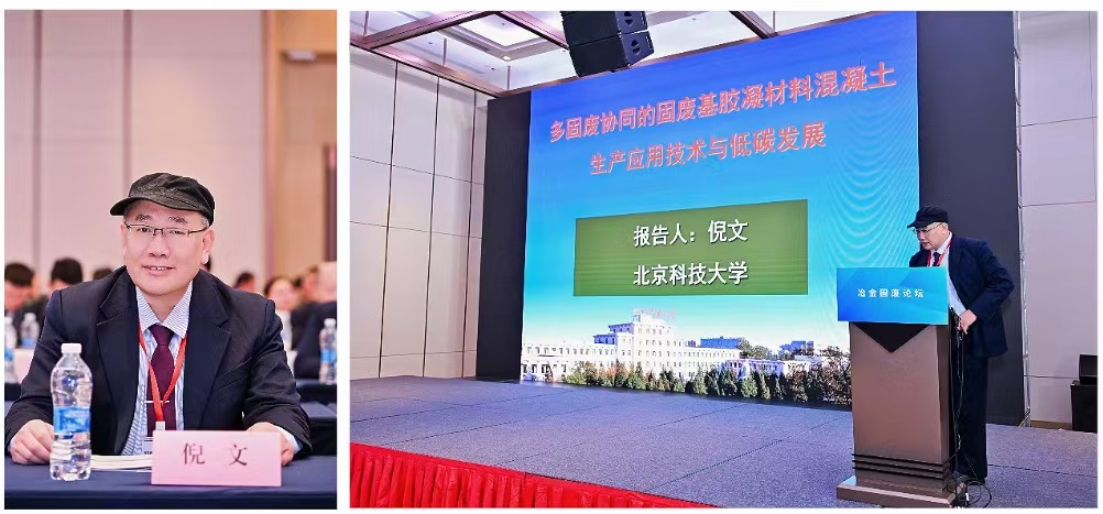 冶金固废论坛上,倪文受邀做了题为《多固废协同的固废基胶凝材料混凝土生产应用技术与低碳发展》的报告,从不同强度等级固废基混凝土的原料配比、产品力学性能和工作性能、耐久性检测结果、产业化应用案例、标准制定、理论建立等方面对固废基胶凝材料进行全面而深刻的解读。他指出,多固废协同制备的胶凝材料,可作为水泥行业低碳转型升级的新产品,有利于消纳利用多种固废,实现资源的循环利用,在减排水泥生产煅烧过程及原料石灰石分解所排放的大量CO2方面具有巨大潜力。同时,该材料耐久性好、抗海洋环境侵蚀能力强的特点,还能在建筑物全生命周期的碳足迹方面具有额外的减排CO2的潜力。倪文提出不同体系多固废协同的低碳胶凝材料在水化硬化原理、服役过程和耐久性方面都存在很多相似的化学动力学过程和质点迁移与再结合的矿物学反应过程。多固废协同的低碳胶凝体系以“复盐效应”和“硅的四配位同构化效应”两个理论作为相互协同的支撑点,以“被动水化动力学”作为技术基础进行进一步深入研究。最后,他对多固废协同的低碳胶凝材料CO2减排潜力进行了分析和展望。