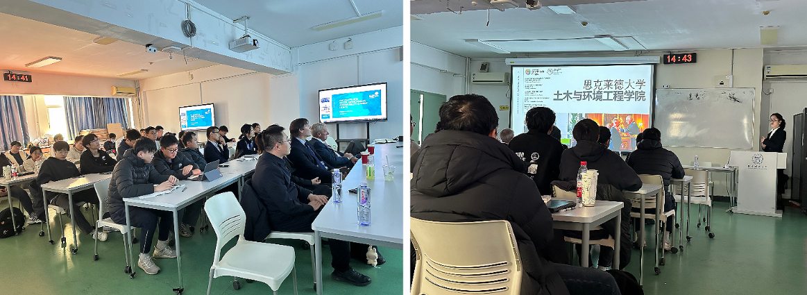 Zoe Shipton在题目为《千兆瓦时级大规模地下热能存储:工程化结构与废弃矿井》的学术报告中,详细介绍了团队在废弃矿井再利用促进能源转型的前沿科研进展和现存挑战。报告过程现场气氛活跃,学术氛围浓厚。学术报告后思克莱德大学土木与环境工程学院国际助理殷子晴进一步介绍了英国思克莱德大学的办学特色与国际化战略,交流了两校在学生培养等方面的发展前景。