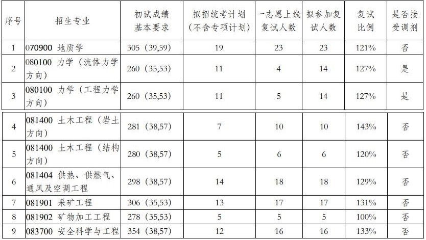 说明:我院一志愿上线生比例介于100%~120%的专业,且一志愿复试合格生源能满足招生计划的专业,将不再进行调剂。