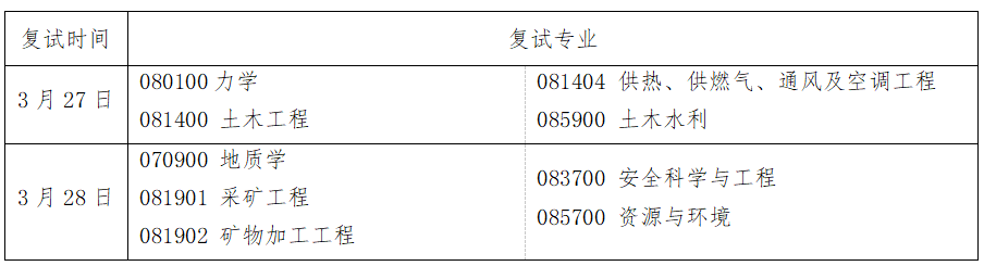 具体复试时段请及时关注我院官网通知(http://cres.ustb.edu.cn),请考生保持联系方式畅通,我院将会在复试开始前一天短信提醒。