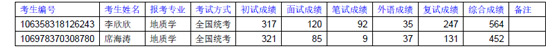 我院地质学(070900)专业拟录取考生张婕(考生编号:100088210008050)因个人原因放弃录取,我院经中国研究生招生信息网发布缺额信息,调剂两名考生进行复试,现将复试成绩及拟录取名单公示如下:
