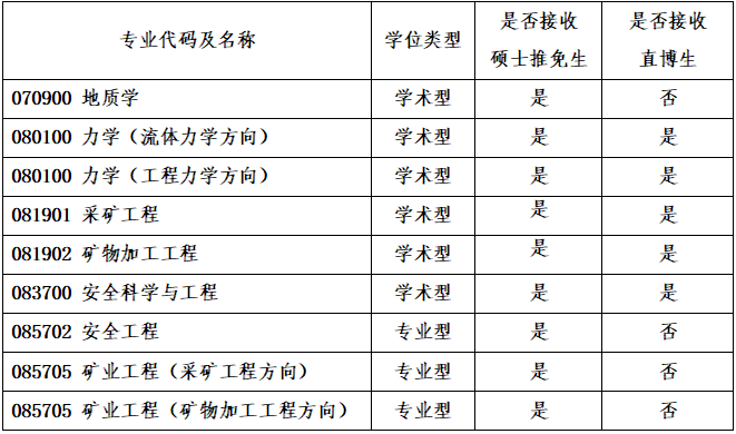 学院人才培养体系完善,现有矿业工程、安全科学与工程、力学三个一级学科博士点,1个专业学位博士点,矿业工程、安全科学与工程、力学、地质学4个一级学科硕士点,1个专业学位硕士点,建有矿业工程、安全科学与工程、力学3个博士后流动站,开设采矿工程、矿物加工工程、智能采矿工程、安全科学与工程、工程力学5个本科专业。