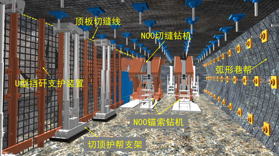 煤炭是我国能源安全的“压舱石”。长期以来,我国煤炭井工生产一直以121工法为主。该工法于1706年起源于英国,存在采掘系统分离、巷道掘进量大、煤柱资源浪费、生态环境损伤等问题。本数字模型演示一种“采留一体化”的开采新方法,该方法由我国何满潮院士于2016年提出,可实现采区内巷道掘进量减少50~80%,资源采出率提高10~15%,减轻地表环境损伤,具有显著经济社会效益。