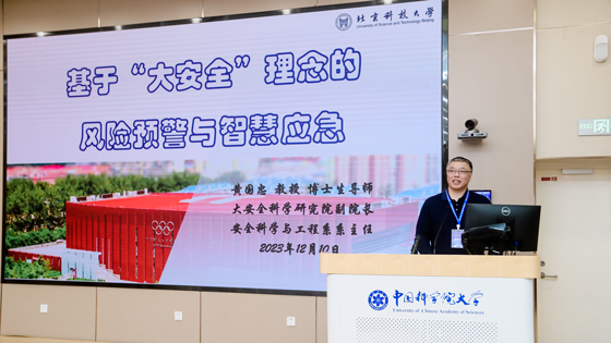 2023年12月10日,由中国科学院大学与全国安全职业教育教学指导委员会联合主办的2023智慧应急发展论坛在北京市召开,本次论坛的主题是“加强智慧应急能力建设,构建综合监测预警体系”。参会人员包括应急管理部、工业和信息化部、中国科学院等相关机构的领导和专家;院士、应急行业专家和知名学者;高等院校、科研机构代表;全国安全职业教育教学指导委员会、中国产业互联网发展联盟等行业组织与协会代表;应急产业企业、信息科技企业、地方应急管理部门代表等。安全科学与工程系系主任黄国忠教授受邀参加了本次会议并做主题报告。