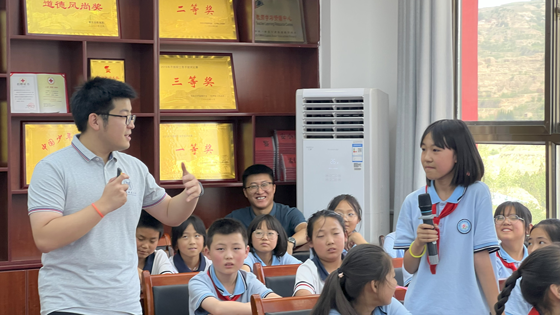 签约仪式结束后,梯队党支部4位党员同志带领王尹中心小学的同学们开展了一堂“我的大学”认知课程,通过趣味运动及课堂教学,带领同学们体验和分享自己的大学生活,孩子们积极参与,踊跃表达。