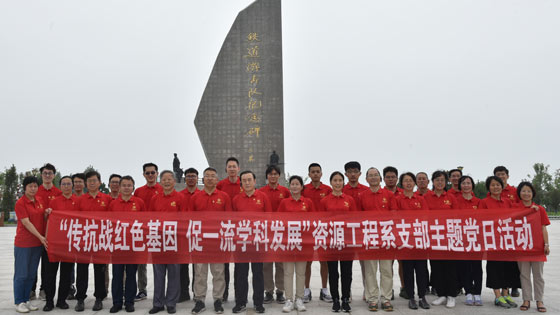 为全面贯彻党的教育方针,落实立德树人根本任务,加快我校一流学科建设,资源工程系党支部组织支部党员于7月12日至14日,赴山东省枣庄市开展了以“传抗战红色基因,促一流学科发展”为主题的党日活动。太阳成tyc7111cc人事处处长尹升华、tyc7111cc太阳成集团党委书记耿倩男、院长苗胜军、副院长金爱兵等领导出席了相关活动。