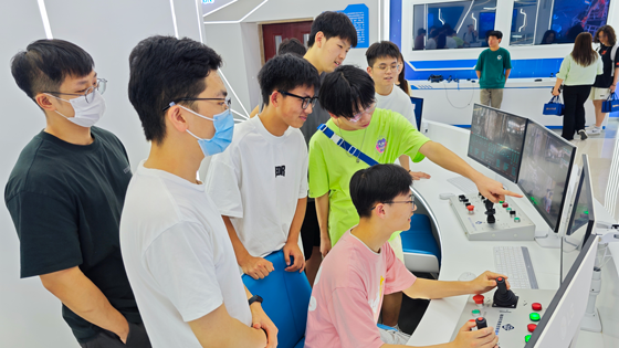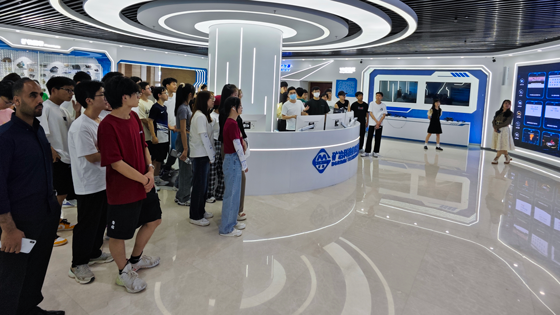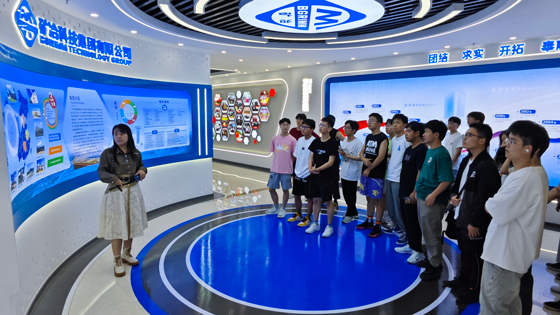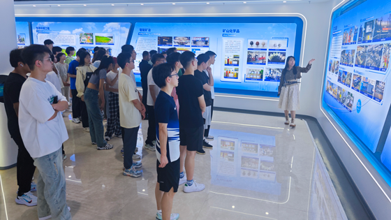 活动伊始,学生们受邀参观了矿冶科技集团有限公司展厅,马朝阳详细介绍了公司的党建工作、发展历程、业务范围、人才队伍和突出成果。在工作人员指导下,学生们开展了动手实践,部分学生戴上了VR头盔,模拟参与金属矿地下开采凿岩、爆破、运矿等作业过程;还有部分学生动手操作控制档杆,模拟开展了矿石破碎装置远程遥控等,极大地增进了学生对采矿工程的专业的认知、认同与归属感。