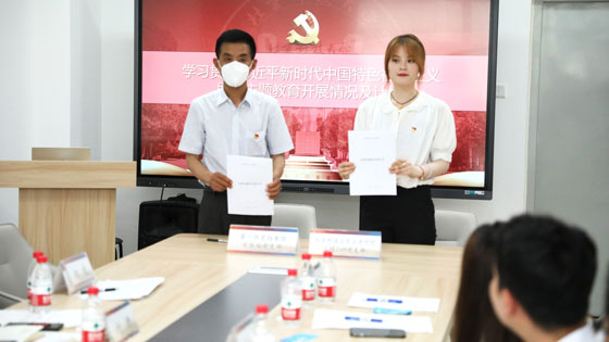 双方相互介绍学习贯彻习近平新时代中国特色社会主义思想主题教育开展情况及下一步工作计划。土硕2209党支部书记孙斯维从组织建设、思想建设和学习方案三方面进行工作汇报,表示要以本次主题教育为契机,进一步加强党的创新理论武装,不断提升支部党员的理论素养,为奋进新征程凝心聚力,勇毅前行。安保处党支部组织委员张钰介绍了党支部的学习方案、特色活动和学习目标,表示在基层党建方面,双方都形成了符合自身实际和体现自身优势的工作模式,也取得了一定的工作成果,通过结对共建,能够促进互学互鉴,凝聚双方优势,发挥示范引领作用。