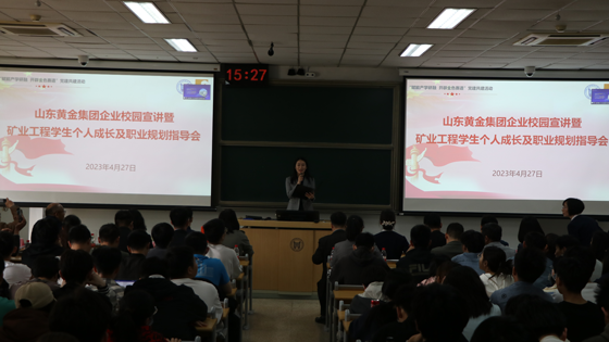 山东黄金集团和太阳成tyc7111cc有着源远流长的友好交往历史,“求实鼎新”的校训与山金发展理念相融相通。继3月17日资源工程系党支部与山东黄金集团“赋能产学研融,开辟金色赛道”党建共建启动仪式以来,双方频繁开展共建交流互动,本次宣讲会进一步推进双方在人才培养、科研合作、就业实习等领域深度合作。本次宣讲也重在加强学生专业认知教育,鼓励矿业学子们投身矿业行业,为建设一流矿山,产出一流科技成果,服务国家矿业发展输入新鲜血液。
