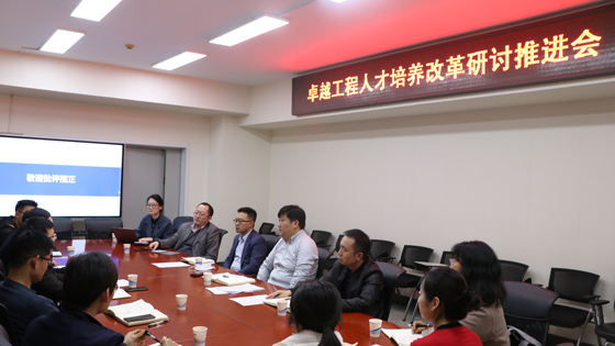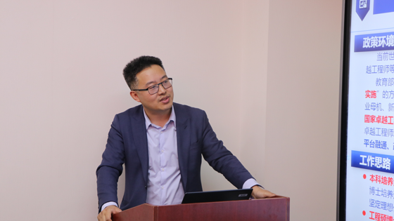 研讨推进会上,卓越工程师学院常务副院长张海君向与会人员介绍了我校“一生双师百企千人”卓越工程师培养计划,及下一阶段的重点工作内容。马聪书记对国家相关政策、学校战略定位和改革具体要求做了进一步阐释。