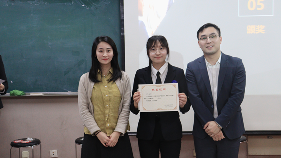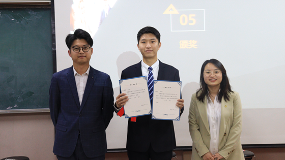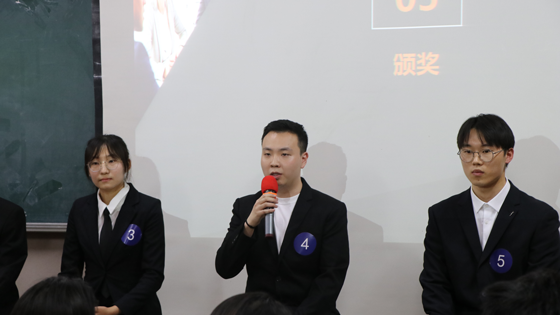 颁奖环节,闫然同学荣获一等奖,并成功晋级学校模拟求职大赛决赛。高深远、叶冠华同学荣获二等奖,罗衍阔、郭吉祥、李梦瑶同学荣获三等奖,王雨声、邹圣琦、薛森淼、马嫣然、杨宇宸、杨阳同学荣获优秀奖。