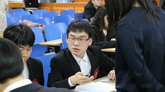 随后,第一环节比赛正式开始,参赛选手分为四组进行无领导小组讨论。比赛一开始,选手们就纷纷进入状态,积极阐述各自观点,踊跃发言并与队友讨论辩驳直至获得统一的结论。本环节结束后,12位选手成功晋级下一环节。