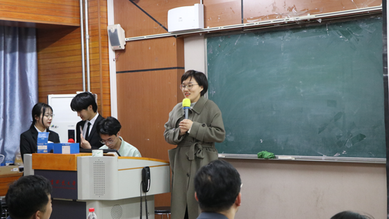 刘春为选手们介绍比赛规则,强调无领导小组讨论和结构化面试在求职过程中的重要性,并对积极参赛的热烈氛围表示肯定,她希望同学们能通过比赛提前着手进行求职准备,在未来的职业发展中取得先机。