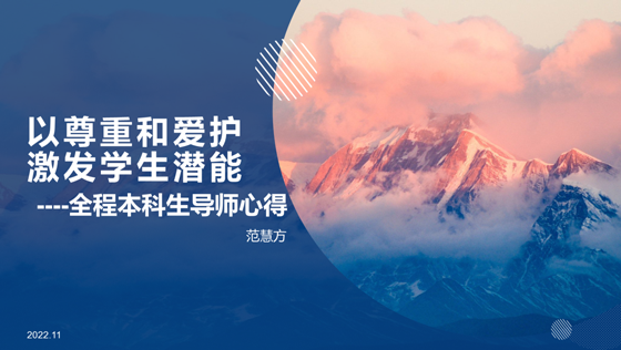朱博莉结合自身成长成才经历指导全程学生,将自己放到学生的位置思考问题,及时了解学生的需求并给予帮助与建议,充分尊重学生,指导学生治学严谨、与人为善,学会做人之道,奠定人生基石。