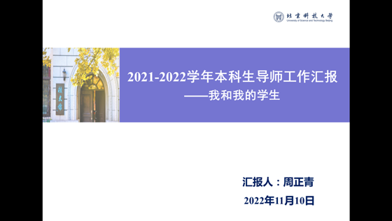 教学副院长刘洋从学院层面对本科生全程导师制的基本情况、执行情况、学生和导师对全程导师制度的满意度进行了介绍。根据学院对2018-2021级全体学生和导师的调查统计结果,全院师生对本科生全程导师制评价非常高,初步实现了“一降、二升、三满意”的目标。学院书记耿倩男充分肯定了学院本科生导师工作取得的成绩,对老师们的辛勤付出表示感谢,希望年轻老师继续发挥引领作用,年长的老师用关爱浇灌学生,希望导师在人生规划和学业成就上对学生给予更多关注。
