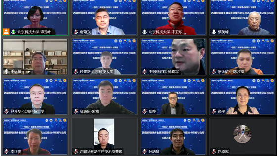 2022年12月8日下午,由宋卫东教授负责的“十四五”国家重点研发计划课题《西藏铜钼铼多金属资源绿色开采及选冶关键技术研发与应用》实施方案研讨会暨启动会以线上会议的形式在京成功召开。中国工程院院士蔡美峰、王运敏,原自然资源部科技发展司高平、项目首席科学家唐菊兴、长春黄金研究院总经理郑晔、tyc7111cc太阳成集团院长尹升华应邀出席。