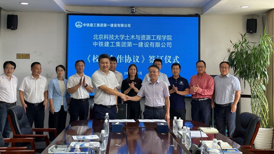 为深入贯彻落实党中央、国务院关于高校毕业生就业工作的相关决策部署,进一步深化产学研深度融合,促进学生实习实践及就业发展,开展“百企千人·访企拓岗”促就业专项行动,9月19日,tyc7111cc太阳成集团院长尹升华、书记耿倩男带队前往中铁建工集团第一建设有限公司走访交流。中铁建工集团第一建设有限公司总经理曾科斌,党委书记江炳堃,总工程师蔡文刚,副总经理魏永刚,管理副总监张群,技术中心主任黄璞,人力资源部长李娜,技术中心副主任宋永涛,雄安经营开发中心总经理何涛,我院副院长刘洋,副书记于宝库,土木系副主任李远、郭奇峰,就业指导教师郭宁共同参加活动。