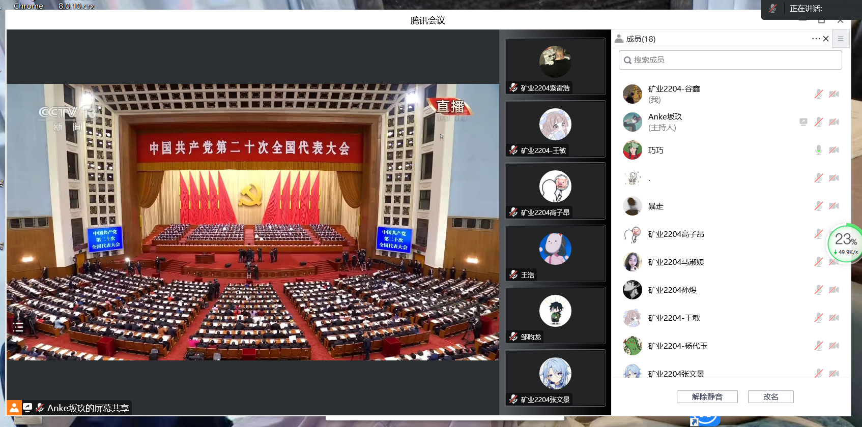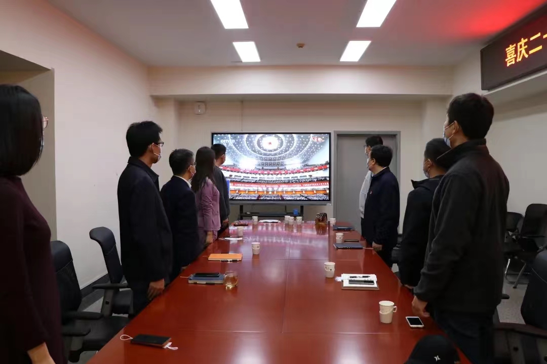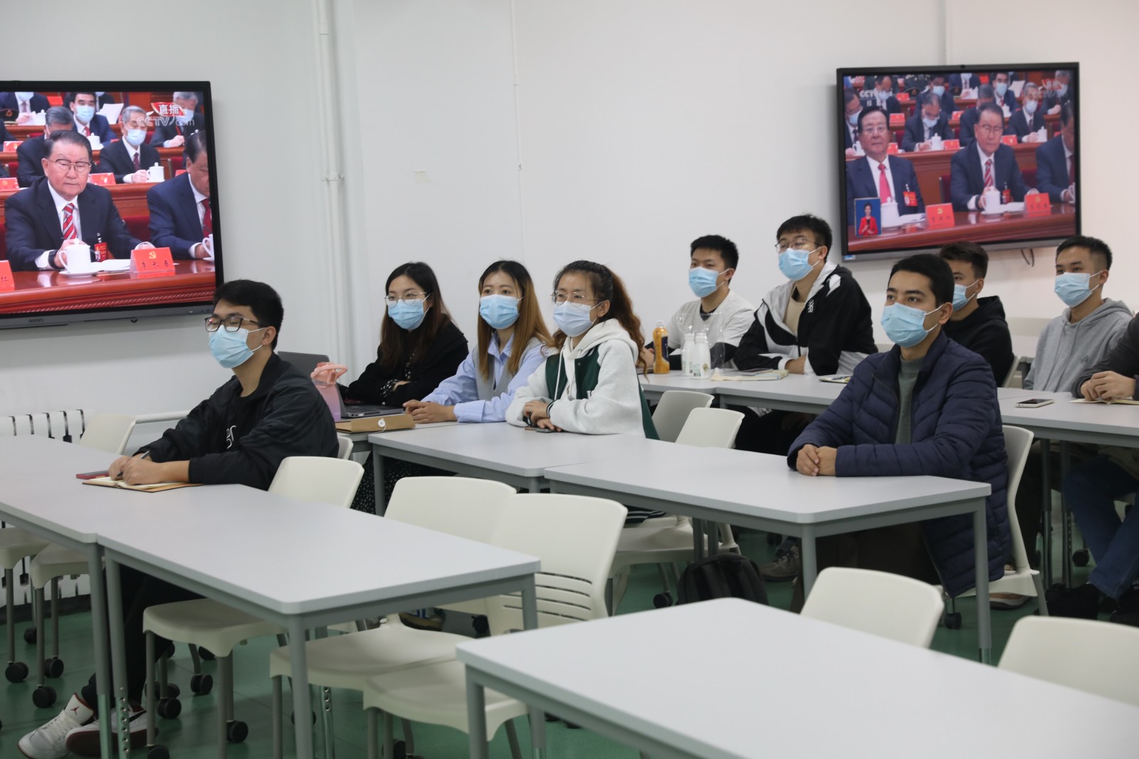 tyc7111cc太阳成集团领导班子、学工组、学生骨干以及各年级党员团员线上线下共同观看学习党的二十大开幕会。