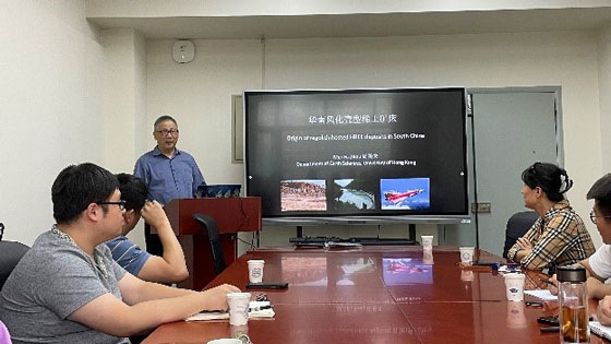 稀土元素(REE),特别是重稀土,在高科技、绿色能源等领域具有广泛用途,是关键性战略金属。我国华南风化壳型稀土矿床是世界重稀土的最主要来源,具有重要的资源意义。做为风化壳型稀土矿床研究领域的知名学者和国家自然科学基金重点项目负责人,周美夫教授为我校师生做了题为“华南风化壳稀土矿床的成矿作用”的学术报告,并就赋矿岩石的成因、稀土迁移与富集机制等与我校师生进行了热烈的讨论。我院谢玉玲教授、杨志明教授、钟日晨副教授等20余名师生参加了本次讲座。