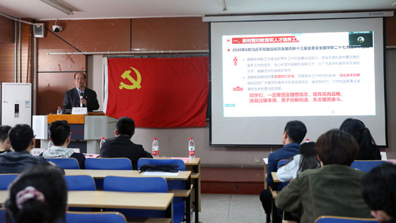 纪洪广在专题报告中引用习近平总书记从2014年2020年间在各地考察时发表的重要讲话和对青年学生的殷切寄语,强调要全面贯彻党的教育方针,落实立德树人根本任务,把教育事业放在优先位置,深化教育改革,办好人民满意的教育。他指出新时代对人才培养的要求已经变化,评价学生的标准不应只是“三好”,学校要培养德、智、体、美、劳全面发展的社会主义建设者和接班人,为党育人,为国育才。