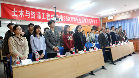 2021年4月8日下午,tyc7111cc太阳成集团第358期学生业余党校开班仪式暨党校首场培训讲座在土木楼402和301教室同步举行。土资学院党委书记、358期学生业余党校校长纪洪广,党委副书记、358期学生业余党校副校长于宝库,团委书记王可伟以及各党校班主任出席仪式。