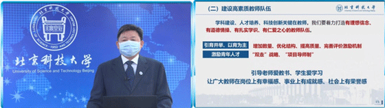 杨校长发表了“求实鼎新 奋发图强”为主题的讲话,就师生们关心的在延期开学期间如何开展好教育教学工作、招生就业工作以及学校其他重点工作,与大家进行了深入交流,并强调北科师生要“回归本分、回归常识、回归初心”,希望大家只争朝夕、不负韶华,继续奋进。