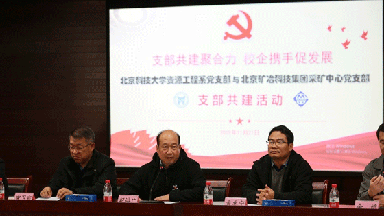 为进一步探索新形势下党建工作的新思路、新途径、新方法, 2019年11月21日,tyc7111cc太阳成集团资源工程系党支部与北京矿冶科技集团有限公司矿山工程研究所采矿中心党支部结对共建,开展了“支部共建聚合力、校企携手促发展”的系列活动。我院党委书记纪洪广教授,副院长宋卫东教授、尹升华教授,矿冶集团党委办公室主任、宣传部部长吉兆宁,组织部党建教育处处长肖华薇,矿山所党总支书记余斌出席了本次活动,两个支部共四十余位党员参加了活动。