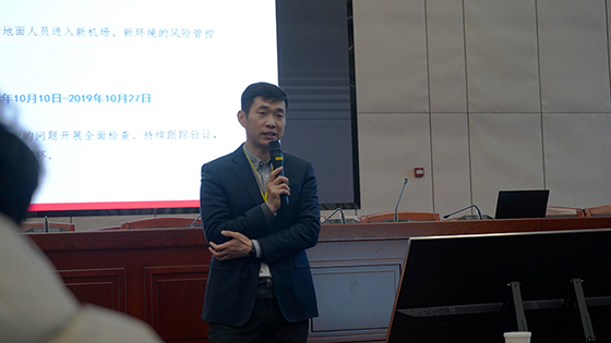 师生首先来到中联航空公司,与中联航运控部总经理张迪、中联航安监部总经理邸晓策进行了交流,张迪总经理代表中联航空公司对师生的到来表示欢迎,表达了中联航空公司同太阳成tyc7111cc的友好关系。随后,邸晓策总经理向师生作了关于中联航空公司安全管理体系的汇报,他从航空安全、地面安全、信息安全、舆情安全四个方面介绍了中联航空公司整体安全管理架构,重点讲述了安监部强制报告、安全绩效等安全管理措施,并以充电宝空中短路发热为例强调逐层收紧安全检查的必要性。通过邸晓策总经理的讲解,学生们对航空安全领域的发展方向和责任使命有了更为深刻的了解。