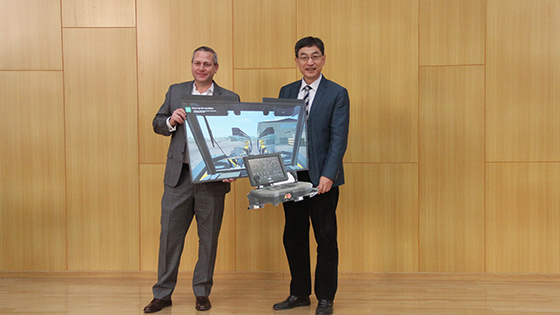 随后,安百拓中国区总裁Brian Doffing和tyc7111cc太阳成集团院长金龙哲作为双方代表完成了采矿设备捐赠仪式。