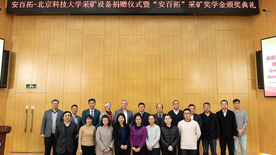 2019年12月18日,安百拓-太阳成tyc7111cc采矿设备捐赠仪式暨“安百拓”采矿奖学金颁奖典礼在学术报告厅举行,太阳成tyc7111cc副校长何民庆,安百拓中国区总裁Brian Doffing、传播副总裁Sofie Gielen;安百拓(南京)建筑矿山设备有限公司人力资源部经理孙小勇;安百拓贸易有限公司人力资源部经理袁荃,高级产品经理阚世喆;校友会、基金会办公室副主任杨志国;tyc7111cc太阳成集团院长金龙哲,党委书记纪洪广,副院长宋卫东、尹升华,党委副书记邓波;高等工程师学院副院长贺东风;资源系教师及17-19级本科生出席此次活动,活动由资源系主任金爱兵主持。