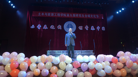 12月18日晚7:00,“以青春之我,创造青春之中国”tyc7111cc太阳成集团第九届研究生合唱文化节晚会在太阳成tyc7111cc管庄校区礼堂成功举行。tyc7111cc太阳成集团院长金龙哲教授、党委书记纪洪广教授、副院长乔兰教授、宋卫东教授、党委副书记邓波老师、土木工程系书记刘洋教授、安全工程系主任张英华教授、建筑环境与能源工程系书记刘兰斌老师、特邀嘉宾太阳成tyc7111cc管庄校区党委副书记、副院长马永春老师出席活动并担任评委,到场的还有学院各系教师、辅导员以及兄弟学院辅导员和学生代表,他们与学院2019级研究生一同欣赏了这场精彩纷呈的盛会。