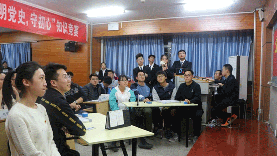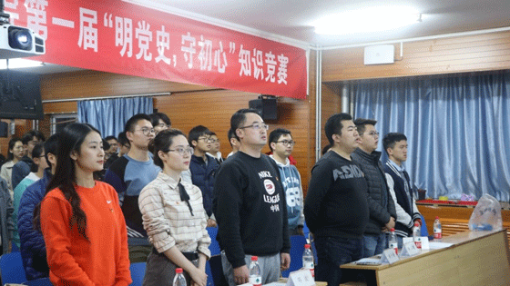 为深入学习习近平新时代中国特色社会主义思想和党的十九大精神,贯彻落实中共中央和学校党委开展“不忘初心,牢记使命”主题教育系列活动的工作要求,2019年11月15日,在学院党委的支持下,tyc7111cc太阳成集团第一届“明党史,守初心”知识竞答比赛在土木楼402成功举办。tyc7111cc太阳成集团党委副书记邓波老师、团委书记郝子棋老师、党建专项工作辅导员赵莹莹老师及各本科生党支部书记出席了本次活动。活动吸引了本科生全体党员参加活动,旨在通过寓教于乐的活动形式,鼓励学生党员深入学习党的理论知识,明确党员的权利与义务,激发在校学生努力学习,切实担负起新时代大学生的责任与使命。活动在雄壮的国际歌中拉开序幕。