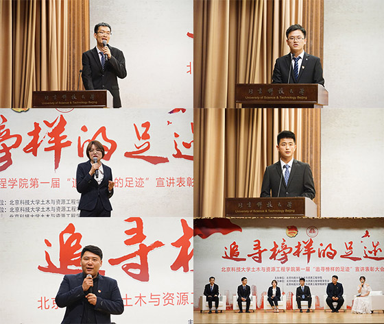 榜样个人宣讲环节,科技达人吴忠鑫,坚守“博观而约取,厚积而薄发”的信念,为到场学子描绘了挥洒心血与汗水的竞赛舞台的魅力;时刻奋战在学生工作一线的研究生会主席侯庆云,为我们展示了一个不忘初心、敢做敢为的土资研儿的学工情怀;专业排名第一、保研清华大学的王辰阳,从别样的视角解密学霸“骗局”,为我们讲述了一段不一样的学霸轶事;“没有白来的收获,也没有白白的付出”,运动健将赵阳向我们展示了全国足球联赛季军与保研同济大学如何兼而得知;“我的青春谁做主,钢筋水泥混凝土”,吴瑞东博士勉励学弟学妹们,要做“敢想、肯干、能写、会玩儿”的新时代研究生。