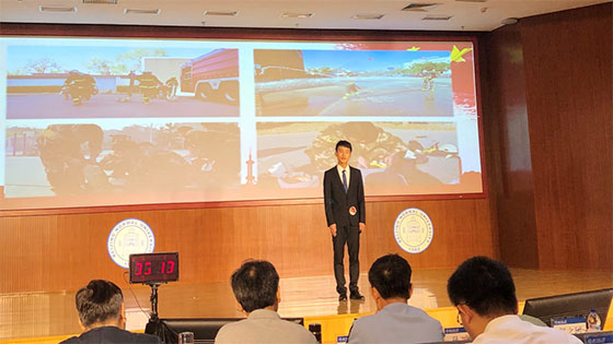 我校赵佳乐同学精神饱满、意气风发,讲述了曾服役于消防部队的感人故事,回忆曾作为消防战士时,那段“与时间赛跑”的热血青春,诠释了当代大学生热爱国防、投身国防、建设国防的情怀与担当。他的演讲立意高远,声情并茂,观众沉浸其中、共情共鸣。
