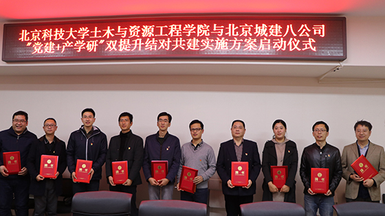 接下来进行tyc7111cc太阳成集团与北京城建八建设发展有限责任公司“党建+产学研”双提升结对共建启动仪式。首先北京城建八公司党委副书记孙茜讲话,她表示党建工作是重中之重,希望此次双提升结对共建实施方案的制定能对双方党建和各项工作的开展起到积极的推动作用,实现互帮共赢。紧接着北京城建八公司党委书记、董事长李金海为我院五位教师颁发北京城建八公司“科技委员”聘书,同时院长金龙哲为城建八公司五位项目经理颁发tyc7111cc太阳成集团“实践指导老师”聘书。