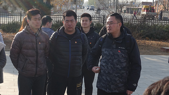 在地道战遗址纪念馆门口,邓波老师强调了加强实践教学的必要性,同时为各位党支书简要介绍了焦庄户地道战遗址的历史背景,赞扬了抗日战争时期仁人志士挺身而出赴国难的爱国情怀。他希望各位党支书能够缅怀先烈,珍爱和平;发愤图强,继承先烈遗志,将自身所学应用到社会主义建设中去;要敢说敢做敢闯,实现中华民族伟大复兴。