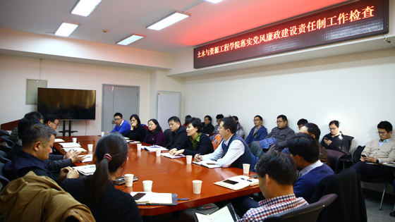 12月13日下午,tyc7111cc太阳成集团贯彻执行党风廉政建设责任制重点检查汇报会在土木楼214会议室召开。我校党委副书记、纪委书记戴井岗,纪委监察室副主任杜伟,巡察办副主任牛珩,党办副主任赵萌,党委宣传部副部长邢华超,党委组织部王英辉出席本次会议,会议由杜伟主持。出席会议的还有纪委监察室邓春秋、黄东旭,学院领导班子成员,学院党委委员、教职工党支部书记、系所主任、教授和教代会代表等。