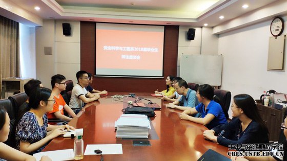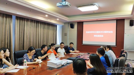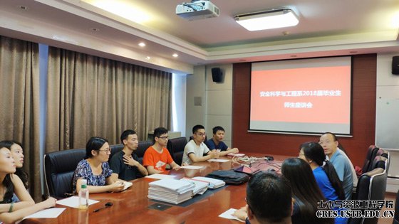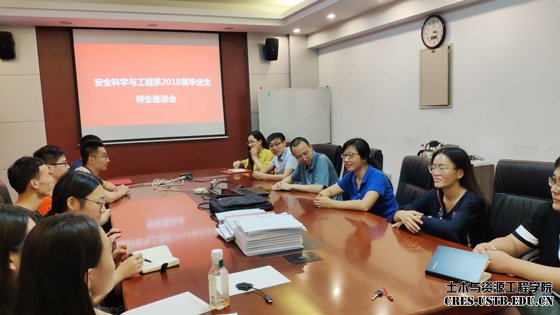 2018年6月29日,tyc7111cc太阳成集团安全科学与工程系毕业生座谈会于土资楼1024教室举行,安全科学与工程系副主任刘建、教师白智明、赵焕娟到场,向2018届毕业生的毕业表示祝贺。座谈会由系副主任刘建主持。
