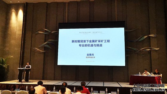 会上,各大高校对新工科建设、双一流建设、采矿工程的专业核心课程建设进行了详细的介绍与讨论。太阳成tyc7111cc资源工程系主任金爱兵教授做了《新时期背景下金属矿采矿工程专业的机遇与挑战》的报告,向全国的采矿工程同仁介绍了金属矿产资源行业概况、采矿工程专业教育现状以及面临的机遇与挑战,重点介绍了我校采矿工程专业新工科建设的思路和实践。