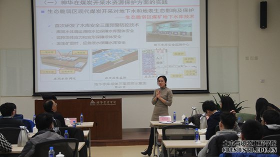 下午,在管理学院102室,重点实验室特聘专家张建民教授为全体师生做报告。张教授结合自身丰富的工程经验从煤炭开采发展情况简介、“煤炭开采水资源保护与利用”国家重点实验室建设背景、概况和运行情况等四个方面进行了全面系统的阐述,总结了世界与中国煤炭开采简史,重点介绍了神华在煤炭开采水资源保护方面的实践,概述了实验室承担和参与项目以及优秀的人才培养成果,使同学们看到了集安全、高效、智能、环保于一体的煤炭工业发展新方向。