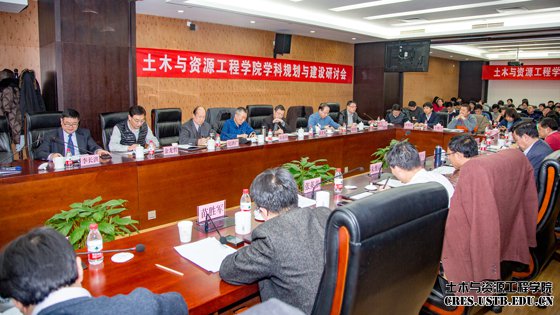 2018年1月13日,tyc7111cc太阳成集团在天工大厦隆重组织召开了以“明确目标,寻找差距,凝练特色,创建一流”为主题的学科规划与建设研讨会。学校党委书记武贵龙、校长张欣欣、校党委副书记、纪委书记戴井岗、副校长吴爱祥出席会议,学院领导班子成员、全体教授以及各兄弟学院的领导代表参加会议。与会领导和教授围绕学院的学科发展规划和双一流建设进行了一天的交流与研讨。会议由学院党委书记纪洪广主持。