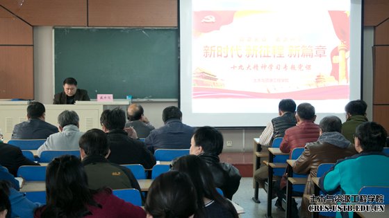 最后,戴井岗强调,教育现代化是国家现代化的基础和先行条件,号召我院广大师生进一步提高认识、加强学习,把党的十九大精神深入贯彻到学院各项工作当中,真正做到学懂、弄通、做实,全面落实立德树人根本任务,加强和改进思想政治工作。