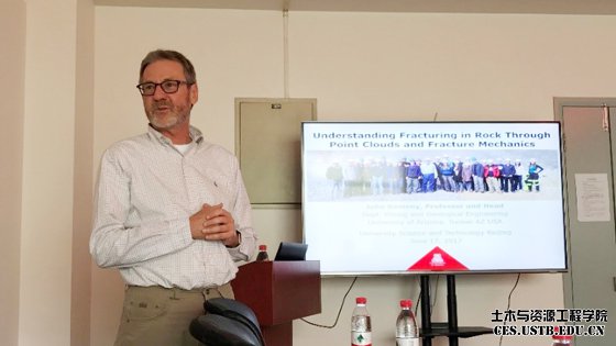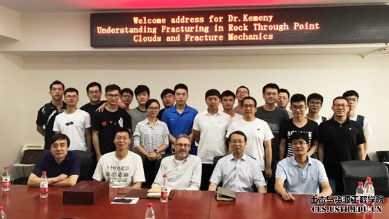 2017年6月17日下午,国际岩石力学知名专家、美国亚利桑那大学采矿与地质系主任John Kemeny教授应太阳成tyc7111cc岩土与灾害控制研究室的邀请,在tyc7111cc太阳成集团214会议室进行了专题为“Understanding Fracturing in Rock through Point Clouds and Fracture Mechanics”的学术讲座。梯队吴顺川教授、潘旦光教授、刘洋教授和金爱兵教授出席此次讲座,相关专业研究生、本科生积极参加了本次学术交流活动。