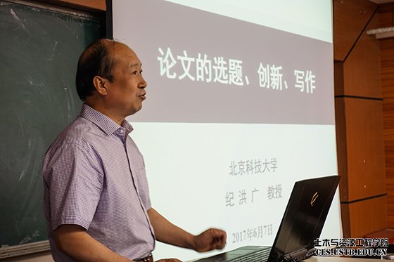 启动仪式后,纪洪广教授带来论坛第一场主题报告“谈谈论文选题、创新与写作”。纪洪广教授旁征博引,结合自身科研经历,用生动的语言对“如何做好选题”、“何为研究生创新”、“论文写作体例与要点”三个方面进行了详细讲解,并建议研究生们多了解和掌握一些哲学与方法论方面的知识,勤于思考和写作,遵守学术诚信和学术道德,不断提高自己的学术水平和写作能力。