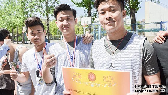 4月24日中午,tyc7111cc太阳成集团“Let’s Rock Them All”毕业生篮球赛决赛在太阳成tyc7111cc篮球场圆满结束。比赛中,土木2队以35:34险胜安全队,采矿队以28:19战胜建环队。最终土木2队登顶,获得冠军;安全队、采矿队分别夺得亚、季军;建环队、矿加队、土木1队分获最佳体育精神、最佳组织和最佳道德风尚奖。