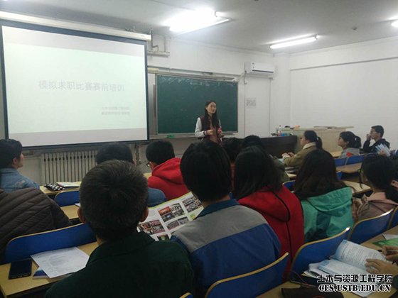 3月31日晚7点,第九届模拟求职大赛赛前培训——简历及面试技巧培训会在土木楼201成功举办。此次培训会由土资学院就业指导老师胡琳茹主讲,为报名参加模拟求职大赛的同学们做好赛前指导。